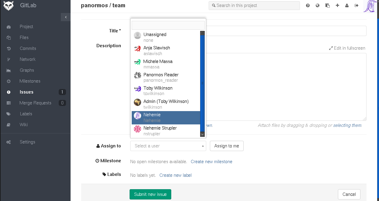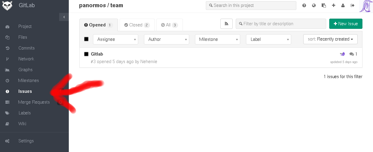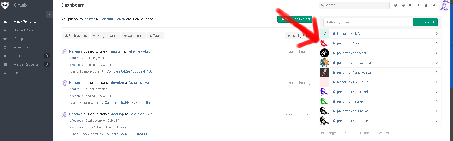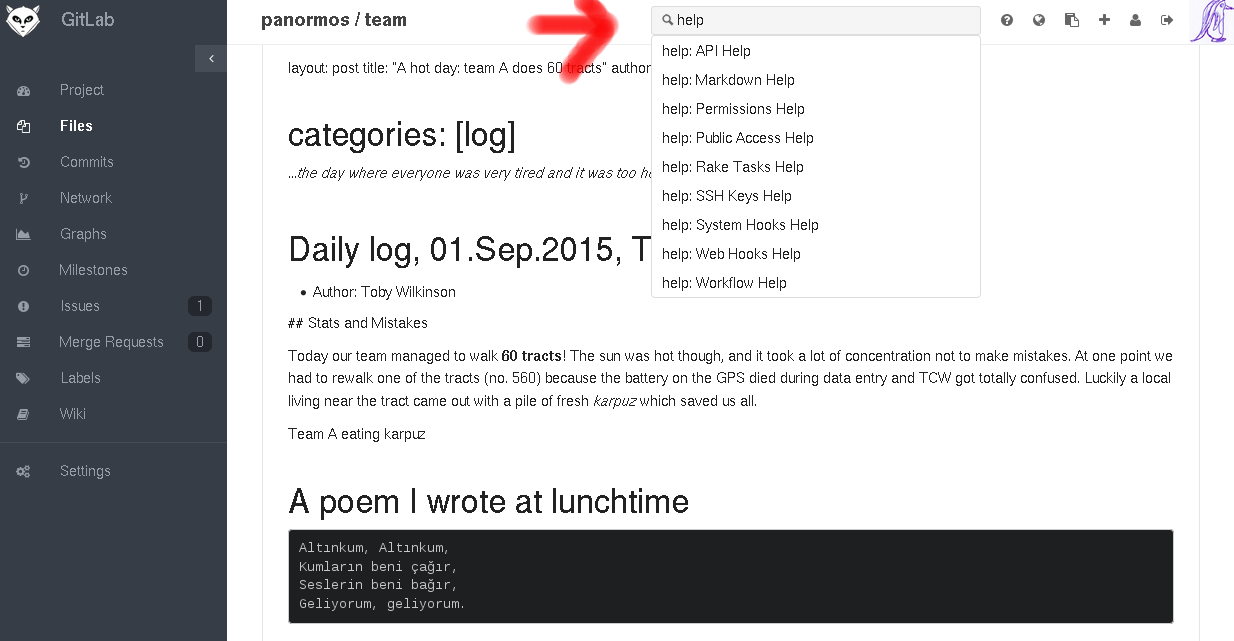 - On the right side, navigate to the project by clicking on “panormos/team” and after, on the left side of the panel click on “Files”. There you will find a folder named “dailylog”, click on it!