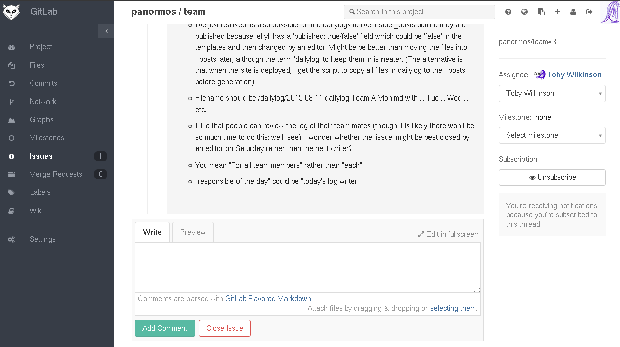 At this point, an email with your comments will be sent to the assignee with a link to the “Issue”, they will forward the mail to all the team members.